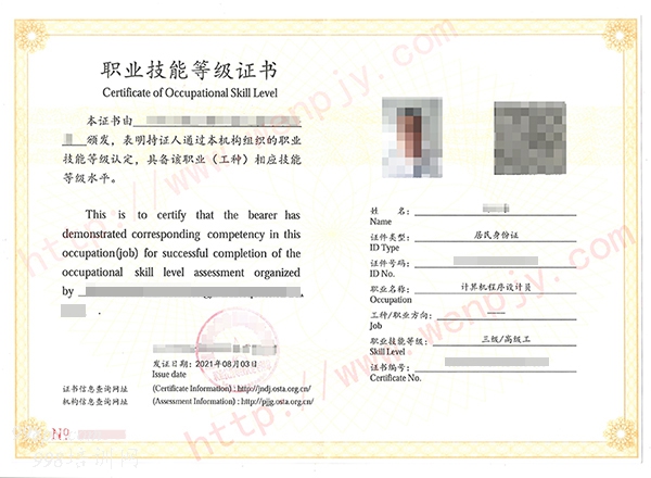 考试合格,颁发职业技能等级证书《计算机程序设计员--三级(高级工)、计算机程序设计员--二级(技师)》。证书可作为专业技术人员职业能力考核的证明、及专业技术人员岗位聘用、任职、定级和晋升职务的重要依据。