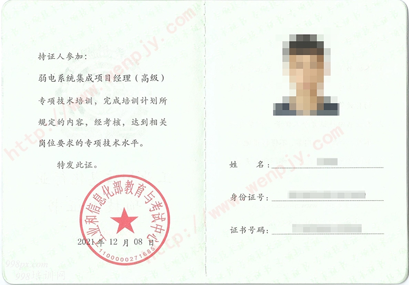 联系人:朱老师 联系电话:17724628463(微信同步)/QQ:1147079554 通讯地址:深圳市石岩街道松白路岭南创谷企创社四楼3A06室 考试形式: 统一网上考试。 报考资料: 2寸蓝底彩色照片电子版1份、身份证正反面电子版1份、毕业证电子版1份、工作证明1(盖公章)。 资格证书: 学员完成全部课程,考试合格,颁发《弱电系统集成项目经理-初级、中级、高级》专项技术证书。证书可作为专业技术人员职业能力考核的证明、及专业技术人员岗位聘用、任职、定级和晋升职务的重要依据。 |