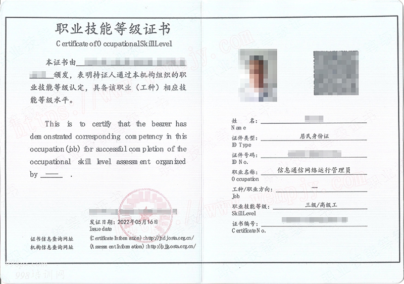 信息通信网络运行管理员---三级(高级工);信息通信网络运行管理员---二级(技师)、信息通信网络运行管理员---一级(高级技师)。