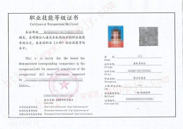 考试合格,颁发《保卫管理员--三级(高级工)、保卫管理员--二级(技师)、保卫管理员--一级(高级技师)》证书。证书官网电子注册,可作为专业技术人员相关职业能力考核的有效证明。