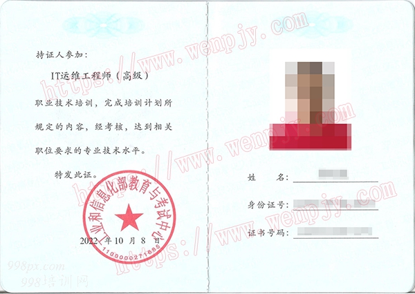 填写报名表---交资料及费用---开通学习账号---统一安排考试---颁发《IT运维工程师--高级》职业技术证书。