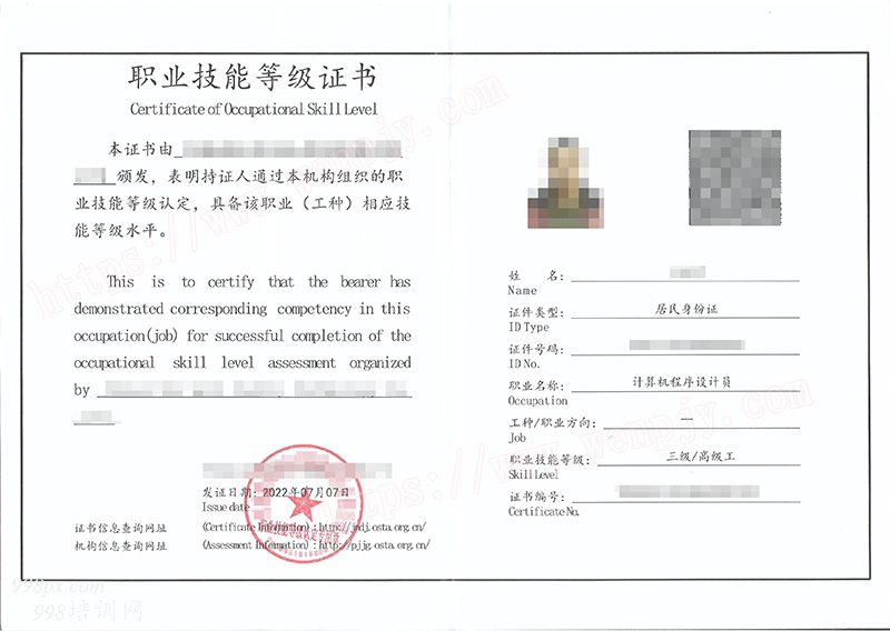 计算机程序设计员---三级(高级工);计算机程序设计员---二级(技师)。