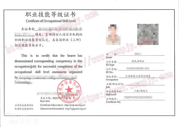 考试合格,颁发--职业技能等级证书《工业机器人系统操作员--三级(高级工)、工业机器人系统操作员--二级(技师)、工业机器人系统操作员--一级(高级技师)》。证书可作为专业技术人员职业能力考核的证明、及专业技术人员岗位聘用、任职、定级和晋升职务的重要依据。