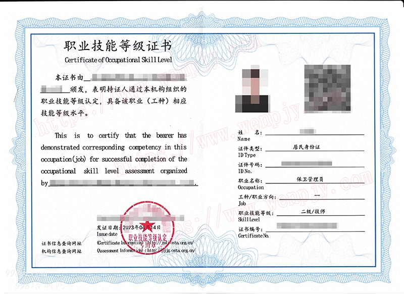 考试合格,颁发《保卫管理员--三级(高级工)、保卫管理员--二级(技师)、保卫管理员--一级(高级技师)》证书。证书官网电子注册,可作为专业技术人员相关职业能力考核的有效证明。