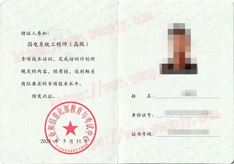 热荐证书:智能化系统工程师、智能化系统集成项目经理、安防系统工程师、安防系统集成项目经理、弱电系统工程师、弱电系统集成项目经理、智慧家居系统工程师、IT运维工程师、数据库管理工程师、大数据分析师、物联网技术应用工程师、装配式工程师(设计、装配、生产)、办公自动化综合应用师、高级网络信息安全工程师、电气工程师、网络工程师、城市信息模型集成与应用工程师、电子商务师、高级软件技术开发工程师、碳排放管理技术、碳监测管理技术、碳资产管理应用、碳交易管理咨询等。 联系人:朱老师 联系方式:17724628463 (微信同步) QQ:1147079554 报读流程: 填写报名表---交资料及费用---开通学习账号---统一安排考试---颁发《弱电系统工程师》专项技术证书。 报名条件: ---初级: (1)具备初中以上文化程度,从事安防系统工作两年以上实践者; (2)具备中专或高中以上文化程度,从事安防系统工作一年以上实践者; (3)大专及以上学历应往届毕业生。 ---中级: (1)具备中专或高中以上文化程度,从事安防系统工作两年以上实践者; (2)具备大专以上文化程度,从事安防系统工作一年以上实践者。 ---高级: (1)具备中专或高中以上文化程度,从事安防系统工作五年以上实践者; (2)具备大专以上文化程度,从事安防系统工作三年以上实践者。 考试形式: 统一网上考试。 报考资料: 2寸蓝底彩色照片电子版1份、身份证正反面电子版1份、毕业证电子版1份、工作证明1(盖公章)。 资格证书: 学员完成全部课程,考试合格,颁发工信部《弱电系统工程师》专项技术证书。证书可作为专业技术人员职业能力考核的证明、及专业技术人员岗位聘用、任职、定级和晋升职务的重要依据。 |