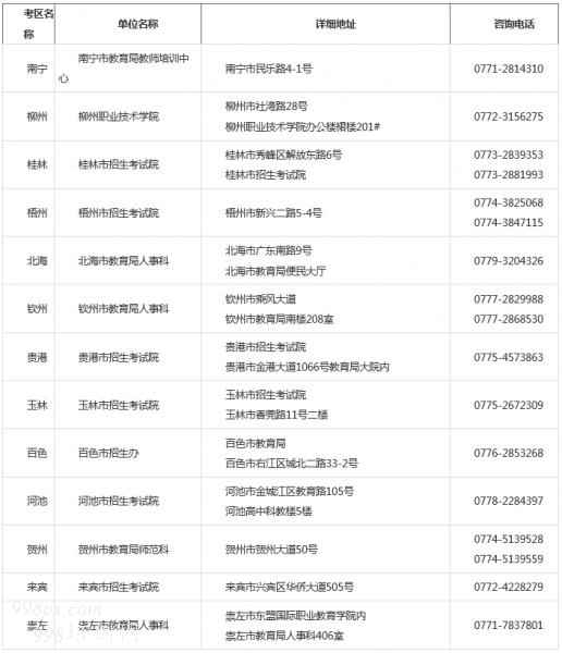考生网上报名后,各考区将在两个工作日内完成对考生的报名信息进行网上审查(仅审查考生上传的照片是否符合要求,不负责对考生的报名资格进行审查)。 (二)报名注意事项。 1.考生网上报名后,不需要进行面试资格现场审核,等待考区网上审核通过后交费即可。如未通过审核且原因不明,可电话咨询所报考区主管单位。详细地址及联系电话如下: