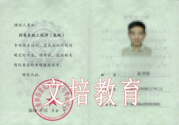 2019年弱电系统工程师(初级、中级、高级)培训班报名开始啦 招生对象: 从事智能化弱电安防工程的技术及管理人员、安防监控机房值班工程师(值班员)、物业工程部的弱电安防技术及管理人员、机关及企事业单位工程部门的弱电安防技术及管理人员、房地产开发单位的智能化弱电安防技术及管理人员、从事弱电安防领域应用研究的科技人员及高校教师,以及有志于投身智能化弱电安防领域的应届生、毕业生及社会人士等。 课程体系: 初级: 1.智能弱电安防系统概述; 2.视频监控系统基础; 3.数字网络视频监控系统; 4.常用绘图软件介绍; 5.智能化工程图纸认识; 6.智能化工程售后服务; 7.出入口控制系统; 8.停车场管理系统; 9.访客对讲系统; 10.电子巡查管理系统; 11.智能化工程常用工具; 12.工程常用线缆认识; 13.智能化工程标准规范; 14.智能化工程施工标准; 15.入侵报警系统; 16.安防综合管理及联动; 17.工程常用测试设备。 中级: 1.智能弱电安防系统概述; 2.视频监控系统基础; 3.数字网络视频监控系统; 4.常用绘图软件介绍; 5.智能化工程图纸认识; 6.智能化工程售后服务; 7.出入口控制系统; 8.停车场管理系统; 9.访客对讲系统; 10.电子巡查管理系统; 11.智能化工程常用工具; 12.工程常用线缆认识; 13.智能化工程标准规范; 14.智能化工程施工标准; 15.入侵报警系统; 16.安防综合管理及联动; 17.工程常用测试设备; 18.信息网络系统; 19.综合布线系统; 20.电话交换系统。 高级: 1.智能弱电安防系统概述; 2.视频监控系统基础; 3.数字网络视频监控系统; 4.常用绘图软件介绍; 5.智能化工程图纸认识; 6.智能化工程售后服务; 7.出入口控制系统; 8.停车场管理系统; 9.访客对讲系统; 10.电子巡查管理系统; 11.智能化工程常用工具; 12.工程常用线缆认识; 13.智能化工程标准规范; 14.智能化工程施工标准; 15.入侵报警系统; 16.安防综合管理及联动; 17.工程常用测试设备; 18.智能家居系统; 19.广播系统; 20.信息网络系统; 21.综合布线系统; 22.电话交换系统; 23.配电与集中供电系统; 24.防雷接地系统; 25.大屏幕显示系统; 26.信息导引及发布系统; 27.施工准备及顺序; 28.火灾自动报警系统; 29.建筑设备管理系统; 30.有线电视系统; 31.卫星电视接收系统; 32.室内通信覆盖与屏蔽; 33.物联网; 34.三网融合; 35.机房工程; 36.会议系统。 报名时间: 即日----2019年6月22日。 报考资料: 2寸白底彩色照片4张及同底电子版照片1份、身份证复印件份及电子版各1份、毕业证复印件及电子版各1份、工作证明1份(盖公章)。 资格证书: 学员完成全部课程,考试合格,由工业和信息化部教育与考试中心颁发《弱电系统工程师-初级、中级、高级》专项技术证书。证书官网电子注册,可作为专业技术人员职业能力考核的证明、及专业技术人员岗位聘用、任职、定级和晋升职务的重要依据。证书持有者将被纳入工业和信息化人才培养工程人才库,供企事业用人单位在线查询。
