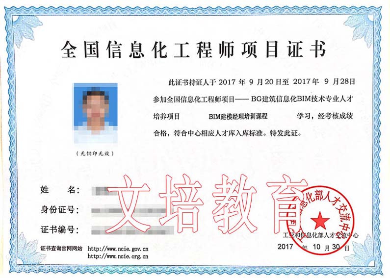 西安2018年BIM建模经理招生中、不受户籍、年龄限制 BIM相关证书: BIM建模师、BIM建模经理、BIM技术模型应用经理、BIM项目管理师、BIM战略规划师、BIM技术总监、BIM技术造价管理、BIM工程师(装饰)、BIM工程师(电力)、BIM建模技术、BIM项目管理、BIM战略规划等。 报名对象: 凡建筑工程、工程经济、造价管理类、建筑结构、土木工程、计算机应用等有关专业的在校大学生,或在建筑业从事规划设计、施工管理、评价咨询、建筑材料、检测监测、方案设计、运营维护等工程技术与管理工作的人员。 报名资料: 2寸白底照片、身份证正反面、毕业证电子版各1份;报名表电子版1份;工作证明打印扫描件1份。 为了全面普及建筑信息技术在建设行业广泛应用,推动我国建筑业可持续健康发展,充分发挥BIM技术的优势,实现工业化和信息化两化融合,提升BIM技术在国际竞争力,为国家一带一路发展战略夯实现代建筑信息技术基础。经组织行业专家调研论证,结合我国建筑业发展现状,启动BG建筑信息化BIM技术专业人才培养项目(以下简称本项目),于2017年7月申请将此项目纳入全国信息化工程师项目。 为提升从业人员的学习能力、操作能力、创新能力,本项目采取产教融合、理论实践结合、线上线下相结合的模式,在课程设置、培训模式、教学管理、人才发展等方面具有较强的系统性和实践性。本项目采取线上或线下培训和结业考核相结合的模式,对于参加本项目课程体系学习并考核合格的学员即可获得工业和信息化部人才交流中心印制并颁发的“全国信息化工程师项目证书”。证书持有者将被纳入中心信息化人才数据库。 参加培训学习的学员经结业考核合格后,由工业和信息化部人才交流中心颁发BIM建模师课程《全国信息化工程师证书--BIM建模经理》,证书持有者将被纳入中心信息化人才库。 联系人:曾老师 联系方式:15889380823-微信同号 报名地址: 深圳市宝安区石岩街道龙腾社区光辉路10号宏宇大厦413室 深圳市龙岗区平湖街道新木南路321号花半里欣悦广场B栋1315室