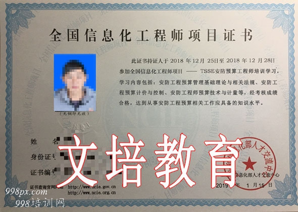 2019年“安防预算工程师”资格证报名,即日起联系我们,轻松获取“安防预算工程师”资格证书,证书真实有效,全国通用,上网可查。这么好的机会,千万不要错过咯,亲们,快快行动起来吧! 报名时间: 即日----2018年4月20日。 2寸蓝底彩色照片电子版1份、身份证正反面电子版1份、毕业证电子版1份、工作证明1(盖公章)。 (1)安防工程预算管理基础理论与相关法规; (2)安防工程预算计价与控制; (3)安防建设工程技术与计量; (4)安防工程预算案例分析。 联系方式: 15889380823(微信同号)-曾老师 Q Q:2395658405 报名地址: 深圳市宝安区石岩街道光辉路10号宏宇大厦413室 |