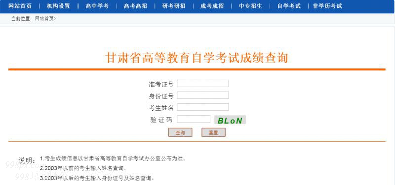 2017年4月份甘肃省自学考试成绩查询入口