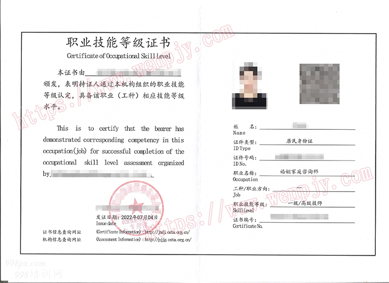 填写报名表---交资料及费用---统一安排考试---颁发《婚姻家庭咨询师--三级(高级工)》证书。