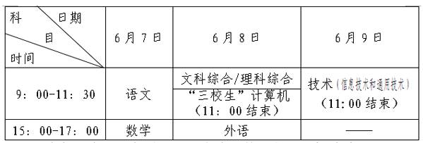 据了解,今年普通类考生单报本科考试科目为:语文、数学、文科综合/理科综合、外语(含听力);本科兼报高职考试科目为:语文、数学、文科综合/理科综合、外语(含听力)、技术(信息技术和通用技术);单报高职考试科目为:语文、数学、外语(含听力)、技术(信息技术和通用技术)。