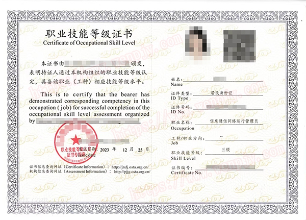 考试合格,颁发《信息通信网络运行管理员--三级(高级工)》、《信息通信网络运行管理员--二级(技师)》、《信息通信网络运行管理员--一级(高级技师)》证书。证书官网电子注册,可作为专业技术人员相关职业能力考核的有效证明。